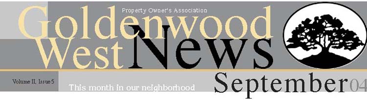 For useful reference information, such as a listing of area churches and telephone numbers for important local contacts, please go to our neighborhood web site at www.goldenwoodwestpoa.org or contact the webmaster.
